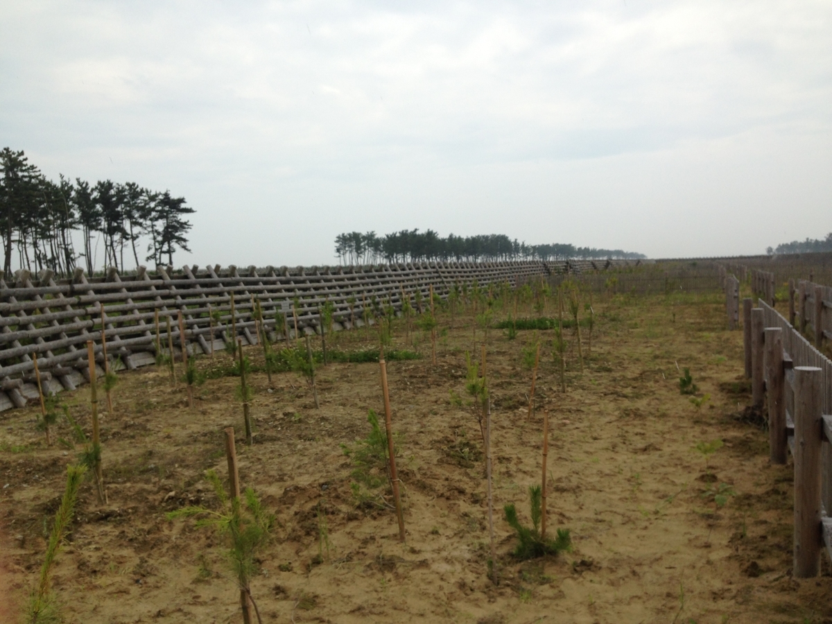 このプロジェクトでは亘理町の海岸沿いに、(南北の)長さ3kmの防潮林を整備するもので、震災前の防潮林は伊達政宗の時代から約400年にも渡って農作物や生活を守ってきたそうです。
